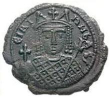 | SB 1600 | Irene. Sole reign. 797-802 AD, AE Follis. Constantinople mint. EIRENH bAS, crowned facing bust of Irene, wearing loros, holding cross on globe and sceptre surmounted by cross / Large M, XXX to left, cross above, NNN to right, A below. DOC 2; SB 1600. | Text | Image |