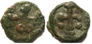 | SB 1775 | Romanus II. AE16-18. Cherson mint. No legend, cross shaped monogram with M-A to left and right, mirror image P above, w below, sometimes with dots at upper left and right / cross floriate on two steps, dot to left and to right. SB 1775, DOC 3. | Text | Image |