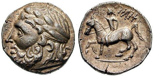| Kostial 378cf | Danube Region. Imitating Philip II of Macedon. Circa 2nd Century BC. AR Tetradrachm. Laureate head of Zeus right / Rider on horseback right, holding a branch; branch below. | Text | ![]() |