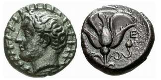 | BMC 4 | Megiste, Caria, AE9, 4th. c. BC. 0.88 gr. Radiate head of Helios right / M-E to left and right of rose bud. BMC 4;Imhoof KM 6; Waddington 2813; SNG Tuebingen 3614; SNG Cop 914. | Text | Image |