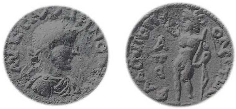 | SNG Levante 1544 | Septimius Severus AE30 of Cilicia, Flaviopolis. Dated local year 122 = AD 194-195. AYT KAI Λ CEY CEYHΡOC, laureate, draped and cuirassed bust right / ΦΛAYIOΠOΛEITΩN, date B-KP, diademed bust of Kronos right with bare chest and fold of cloak on left shoulder. SNG Levante 1544; SNG Tahberer 706-707. | Text | Image |