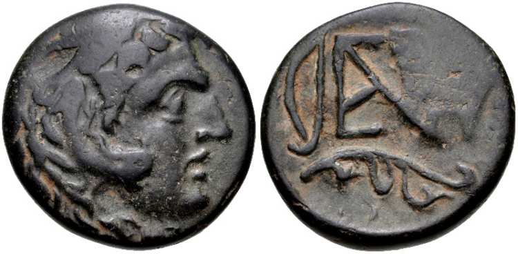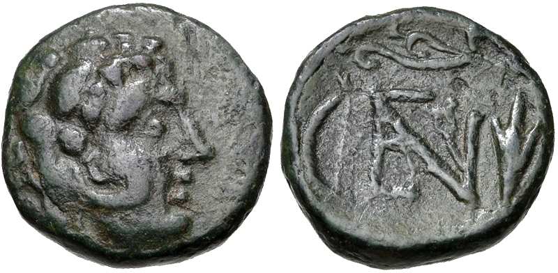 | Imhoof MG 50 | Nephelis, Cilicia, AE16, 394–300 BC. 3.05 g. Head of Herakles right, wearing lionskin headdress. / Quiver to left, EN monogram to right. Imhoof Monn. Gr. 50; Svoronos MCI, 7; Svoronos JIAN 1905 8a; Yarkin Enaia 11-12; Berlin 1909503; Tatar Nephelis Series 2 emission 1 in AIIN 66 (2021). | Text | Image |