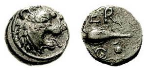| SNG Cop 844 | Chersonesos, Crete or Thrace. AE 13mm. ca 350 BC. Lion's head left / Barley grain. | Text | Image |