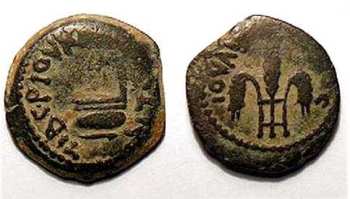 | Hendin 649a | Pontius Pilate, procurator of Judea under Tiberius, 26-36 AD, bronze prutah of 14.7 mm, 2.05 grams. Struck in the year 29 or 30 AD. LIZ (date) within a wreath / Lituus. | Text | Image |