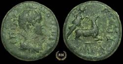 | Paris 449 | Trajan. 98-117. AE 15.17 gr. of Hierocaesarea, Lydia. AY KAI NEΡ TΡAIANO CEB AΡIC ΓEΡ ΔAK PAΡ, laureate, draped and cuirassed bust right / IEΡOKAICAΡEΩN ANΘY ΦEΡOKI, Artemis, with bow and arrow, quiver at shoulder, standing right in a biga of galloping stags. Paris 449; Stumpf 565; GRPC Lydia 74; RPC III 1847. | Text | Image |