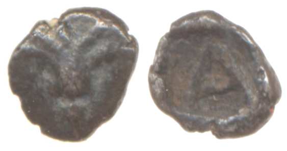 | BMC 7 | Astyra, Mysia, AR tetartemorion, 500-480 BC. 0.21 g. Rose. / A in incuse. BMC 7; Stauber Adramytteion 4A; Borrell 6 in NC 1847; Babelon Traite II-1 726. | Text | Image |