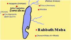 | Spij. 16 [3] | Septimius Severus, AE27 of Rabbath-Moba, Palestine. AVT KAI CEΠ CEOVH CEB, laureate head right / ΡABBAΘ MΩBHNΩN TYCH, Tyche standing right, holding sceptre and uncertain object, left foot on the half-figure of the river god. Spijkerman 16[3]. | Text | Image |