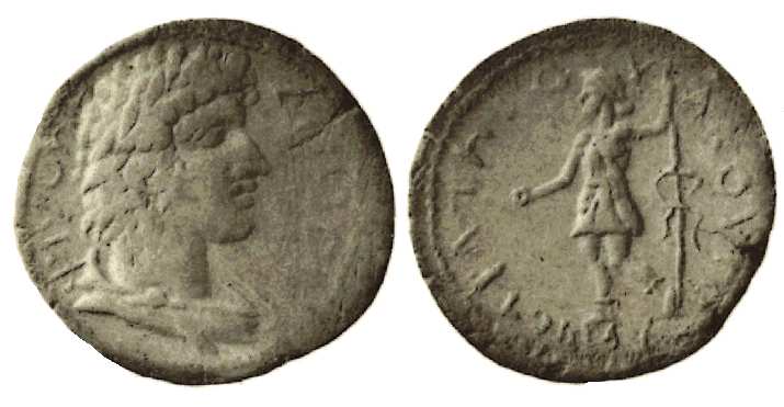 | Imhoof 210 | Julia Domna, AE of Philomelion, Phrygia. Cl. Traianus, magistrate. IOVΛIA ΔOMNA CEBA-CT, draped bust right / (from top right), EΠI KΛ TΡAI ΦIΛOMHΛEΩN, male figure (Trajan?) standing left, holding staff, right hand outstretched. Imhoof RSN 1913, 210. | Text | Image |