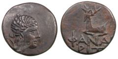 | Sear SG 3615 | Phanagoria, Pontos, 3rd Century BC, AE14. Bearded head of Pan left, wreathed with ivy / ΦA beneath bow and arrow. BMC 3; BMC Black Sea 990-993; Traité II-4, 1765; MacDonald 157; Sear SG 3615. | Text | Image |