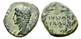 | RPC 99 | Augustus AE24 of Julia Traducta, Spain. PERM CAES AVG, bare head left / IVLIA TRAD in wreath. SGI 18, RPC 99, Cohen 151. | Text | Image |