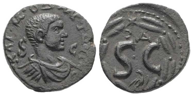 RPC 4248 | Augustus, AE Semis of Antioch, Syria. 6-14 AD. AVGVST TR POT, laureate head right / Large SC within laurel wreath composed of eight sets of leaves. RPC 4248; McAlee 209(c). | Text | Image |