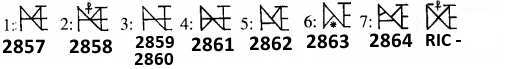 | RIC 2859 | Anthemius AE4. Diademed and draped bust right / Anthemius monogram (type 3) within wreath (mintmark RM, off flan). RIC 2859. | Text | Image |