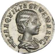 | RIC 228 star centre | Aquilia Severa Denarius.AD 219-220. IVLIA AQVILIA SEVERA AVG, draped bust right / CONCORDIA, Elagabalus standing left, clasping hands with Aquilia standing right. Star in centre field. RIC 228; RSC 6. | Text | Image |