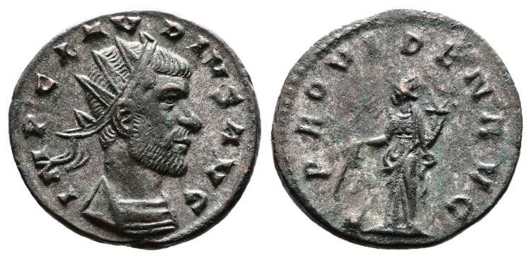 Claudius II AE antoninianus. Rome mint. IMP CLAVDIVS AVG, radiate, cuirassed bust right / ANNONA AVG, Annona standing left, foot on prow, holding corn-ears and cornucopiae. RIC V-I 19. TextImage