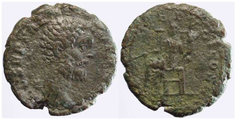 | CMB 12 | Clodius Albinus, AE As. 10.63 g. AD 195-197. IMP CAES D CLO SEP ALB AVG, laureate head right / VICTORIA AVG COS II, Victory walking right, holding wreath and palm branch. Gerber CMB 12., Not in RIC, BMC, Cohen etc. | Text | Image |