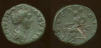 | RIC 675 Sear 6013 | Crispina AE As. CRISPINA AVGVSTA, draped bust right / CONCORDIA S-C, Concordia seated holding patera and cornucopiae. Cohen 7. | Text | Image |