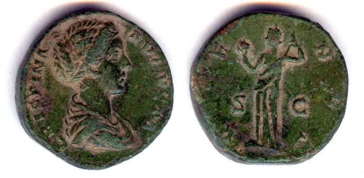 | RIC 682 | Crispina AE As. CRISPINA AVGVSTA, draped bust right / IVNO REGINA S-C, Juno standing left, holding patera and sceptre. Cohen -, BMC -. | Text | Image |