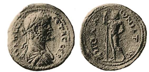 | Themisonium Naumann 58, 351 | Geta, AE25 of Themisonium, Phrygia. AD 198-207. 6.61 g. Λ CEΠ ΓETAC K, bare-headed, draped and cuirassed bust right. / ΘEMICΩNEΩN, Tyche or Homonoia standing left by altar, holding patera and sceptre. Unpublished. Naumann 58, 351. | Text | Image |
