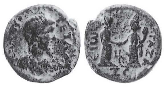 | Tripolis Lydia Waddington 2686 | Geta AE of Tripolis, Lydia. Λ CEΠ ΓETAC KAI, bare-headed, draped bust right / TΡIΠOΛEITΩN, Demeter standing left, holding grain-ears, poppy and torch. Waddington 2686; GRPC Lydia 132. | Text | Image |
