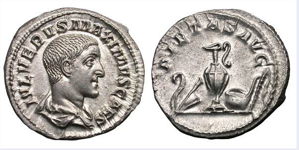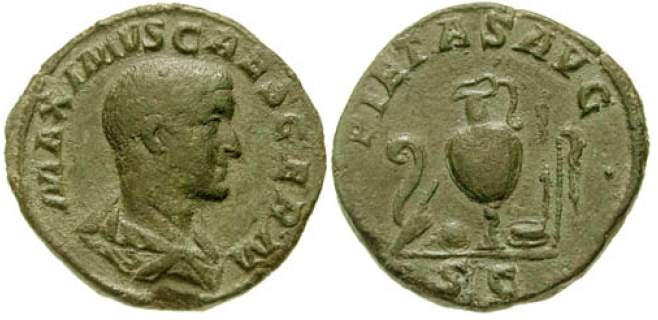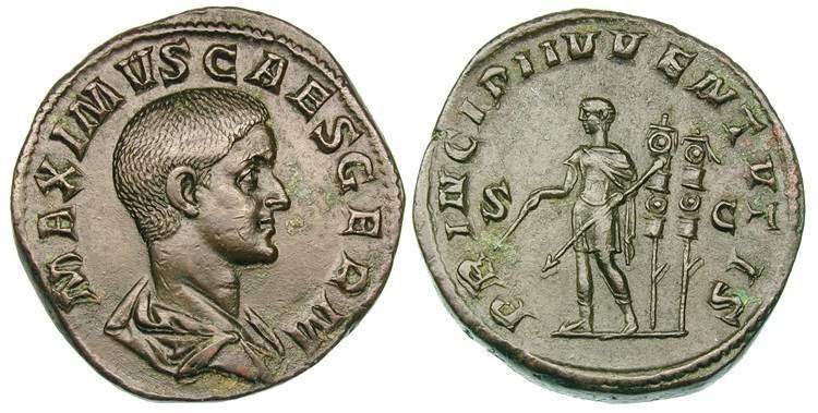 AD 235-238. Caesar under his father Maximinus I. When the Senate condemned Maximinus to death, Maximus was also killed just outside Aquileia on June 24th, AD 238.