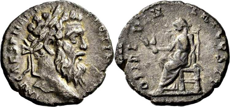 RIC 3 | Pertinax AR Denarius. IMP CAES P HELV PERTIN AVG, laureate head right / IANO CO-NSERVAT, Janus standing facing, holding sceptre in right hand. RIC 3; RSC 17; Sear 6040. | Text | Image |
