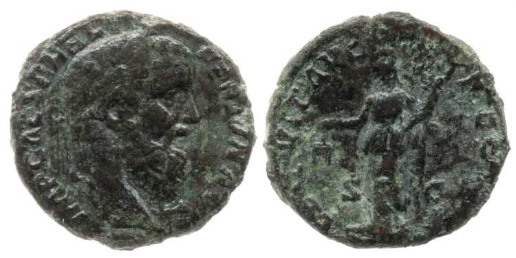 Prusa ad Olympum Hill Prusa 1 | Pertinax, AE29 of Prusa ad Olympum, Bithynia. AD 193. 12.29 g. AYT K ΠEΛBIOC ΠEΡTINAX CEB, laureate head right. / ΠΡOYCAEΩN, Tyche standing left, holding rudder and cornucopiae. Hill Prusa 1 in NC 1912, otherwise unpublished. | Text | Image |