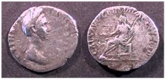Gaba Mionnet 30 | Plotina, AE18 of Gaba, Palestine. Dated 171 AD. ΠΛΩTEINA CEBACTH, draped bust right / KΛAY ΦI ΓABHNΩN, Male figure (MĂȘn?) standing left, holding spear, left hand on hip. Date AOP in lower right field. Mionnet 5, 30. | Text | Image |