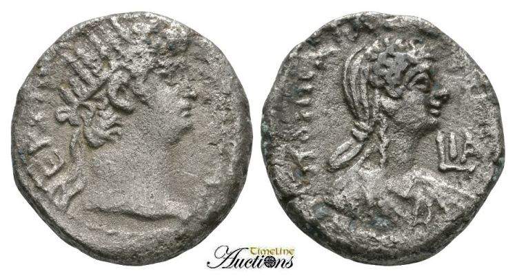 | Alexandria RPC 5282 Milne 223 Sear 2002 | Nero and Poppaea Billon Tetradrachm of Alexandria. Dated year 11 = 64-65 AD. NEΡΩ KΛAY KAIΣ ΣEB ΓEΡ AY, radiate head of Nero right / ΠOΠΠAIA ΣEBAΣTH, draped bust of Poppaea right, LIA to right. Köln 168, RPC 5282. | Text | Image |