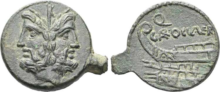 | Gargilia 9 sear5 752 | Vergilius, Gargilius & Ogulnius Æ As. 86 BC. Laureate head of Janus / Prow of galley left; OGVL GAR VER. Cr350A/3c; Syd 722b. | (One example) | ||