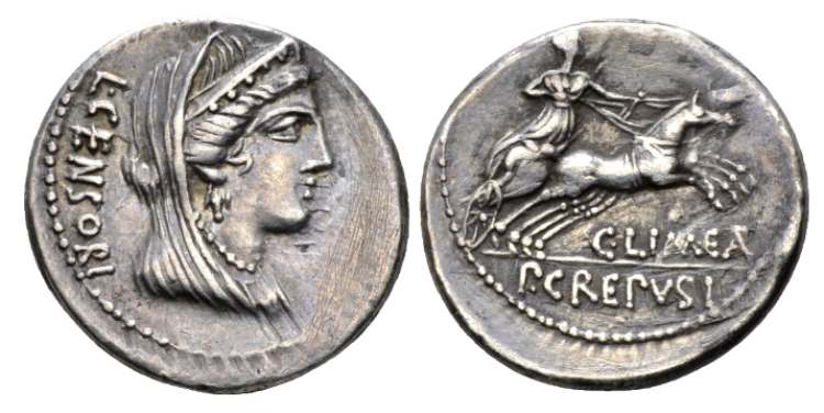L. Censorius, AR denarius, c. 82 BC, (3.82g) L CENSORIVS Veiled bust of Venus right. / Venus in biga right, C LIMEAT below, C CREPVSI in exergue. Syd 736a, Cr360/1b.