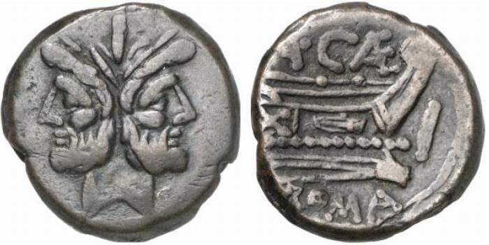 A CAE Æ As. ca 169-158 BC. Laureate head of Janus right, I above / prow right, A CAE above, I before, ROMA below. Cr174/1, Syd 355.