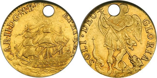 | BMI 86 | Gold Touch Piece, Charles II. BMI-86. St Michael killing the dragon / ship in full sail. | Text | Image |