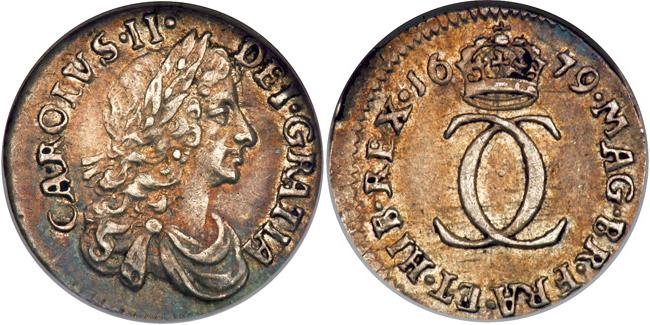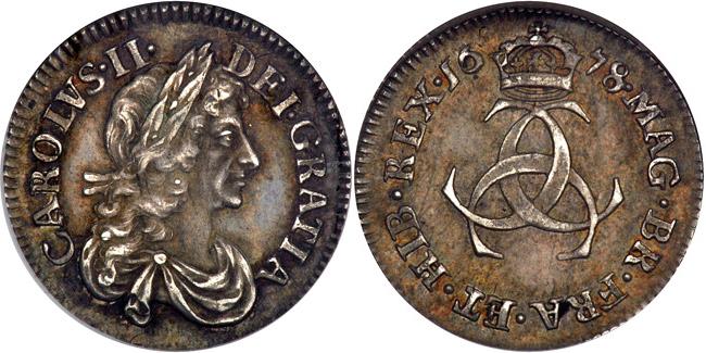 | Seaby 3388 | Charles II AR Twopence. CAROLVS II DEI GRATIA, laureate draped bust right / MAG BR FRA ET HIB REX 16-79 around two interlinked Cs, crowned. | Text | Image |