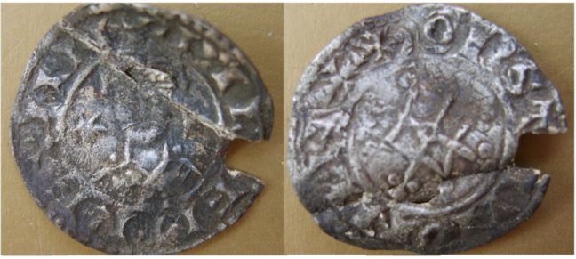 | Spink 5031 | William I, AR Halfpenny, 18mm, Scotland. Moneyer Henri Le Rus. 1205-1230, minted posthumously. Short cross and stars coinage, phase B. LEI REI WILAM, Crowned bust left with sceptre in front / HENRI LE RVS .ON.RORE, Short cross voided with a star in each angle, all within circle. Trefoil of pellets and 'colon' respectively between letters of RVS; 'S' retrograde. Spink 5031; 5033. | Text | ![]() |