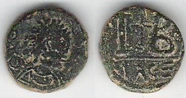 | Arab Byzantine Ashm. 560-562 | Arab Byzantine coin, c. 6th cen. AD, bronze imitative follis of 21.1 mm, 3.84 grams. Struck at the mint of Damascus in Syria. Standing Caliph / Large M with "DAM" in Greek below. Ashmolean Sylloge (SICA) 560-562. | Text | ![]() | |