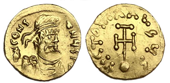 | SB 1228 | Constantine IV Pogonatus, AD 668-685. AV Tremissis, 1.40 g, uncertain Italian mint. dN CONSTANTINYS PP AY, diademed, draped and cuirassed bust right / VICTORI-A [A]VGY I Delta, cross potent. Monogram in right field. Mintmark CONOB. MIB 49 (as Rome); Sear Byz 1228. | Text | Image |