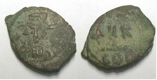 | Hahn 90 | Constantine IV 668-685 AD AE Dekanummium. Constantinople mint. Beardless bust facing, wearing helmet and cuirass, holding cross on globe. / Large I between a cross on the left and a K on the right. Mintmark CON. Sear SB 1182-1183. | Text | Image |