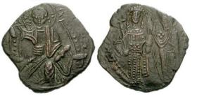 | SB 1998 | Isaac Comnenus of Cyprus, AE Tetarteron. Uncertain mint in Cyprus. IC-XC to left and right of Christ, nimbate, seated facing, unbearded, right hand raised and holding scross in left / ICAAKIOC to left, DECPOTHC to right, Isaac wearing divitision and loros, standing facing on left, cross-headed sceptre and akakia, crowned by Mary, nimbate, on right, MHP between their heads. SB 1998. | Text | Image |