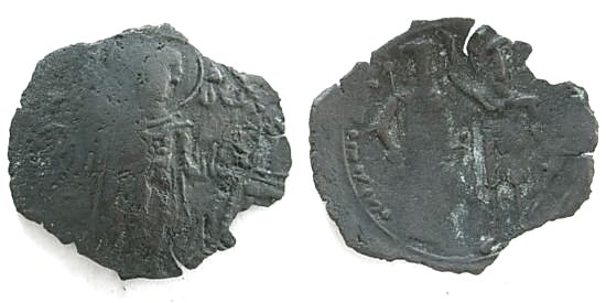 | SB 2189 | John Comnenus-Ducas Empire of Thessalonica, 1237-1242. Billon Aspron Trachy. 25-28 mm. MHP-theta V to left and right of Mary, nimbate, seated facing / IwANNIC, John, no beard, standing facing, holding labarum and globe. SB 2189. | Text | Image |