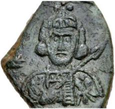 | SB 1368 | Tiberius III, 698-705 AD. Constantinople, AE Half Follis. Fragmentary legend, bust facing with short beard, crowned and cuirassed, holding spear across body and shield on arm / Large K, ANNO to left, cross above, I or II to right, officina letter below. SB 1368, DOC 12. Often struck on quarter pieces of older, larger coins. | Text | Image |