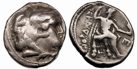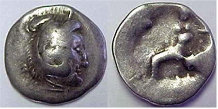 | Gobl 289•1 | Lysimachus Head Type AR Tetradrachm. Beardless head right with flowing hair, horn of Ammon above ear / Horse prancing left, vestiges of rider above.
