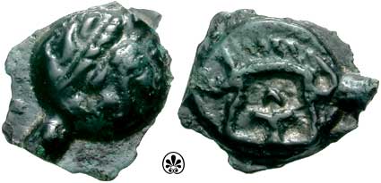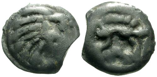 | DLT 9044 | Celtic Gaul, Leuci Tribe Potin 18-19mm. Male head left. / boar standing right, three semicircles below. D&T 226; DLT (Latour) 9077; Paris 9090; Scheers BMC 670. | Text |  |