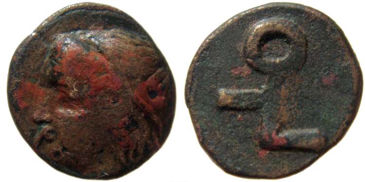 | DS-6 | Julia Maesa AE26 of Myrina, Aeolis. IOYΛA MAICA CEBACTH, draped bust right / EΠ CTΡ (ΦOY) ΦΡEΓEΛΛANOY MYΡEINAI, Ω-N (across fields), Apollo Grynion standing facing, head left, right shoulder and left breast bare, holding patera over burning altar and laurel branch. Unpublished for Julia Maesa. Owner's reference DS-6. | Text | ![]() |
