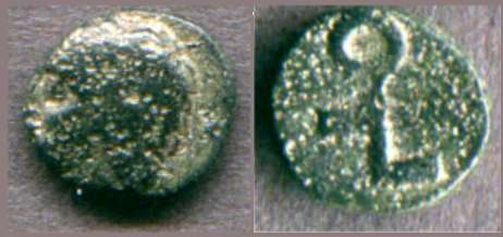 | BMC 39 | Myrina, Aeolis, AE. 2nd c. BC. pseudo-autonomous. 1,82g. Telesphoros standing facing in hooded cloak / MYΡEINAIΩN, Lyre with four strings, two dots below. BMC 39. | Text | ![]() |