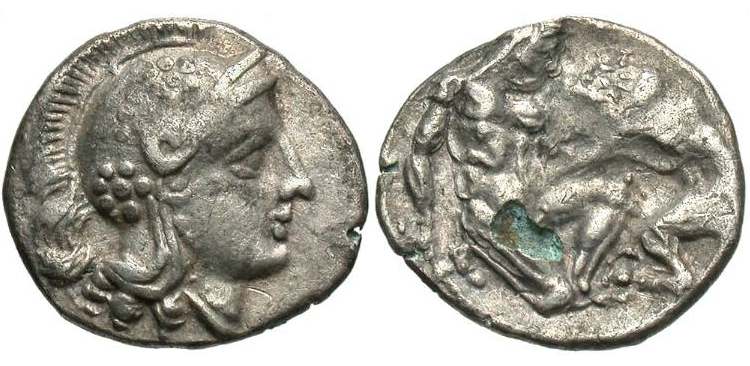 | HN Italy 757 var | Caelia AR Diobol (?) (0.81g). Helmeted head of Athena left / Hercules standing right, strangling lion, club behind. HN 757 var (HN lists head right). | Text | Image |