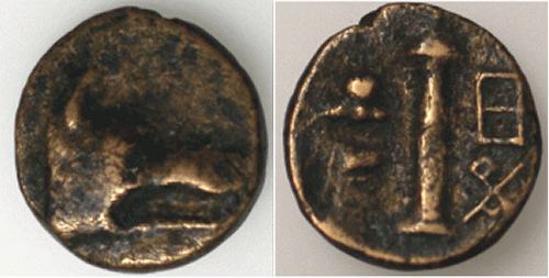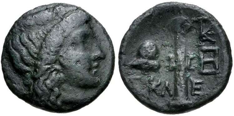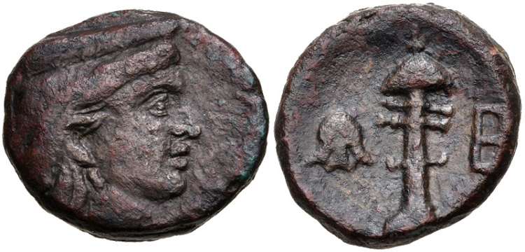 | SNG Cop 70v | Argolis, Argos. Circa 3rd century BC. AE 15mm. Laureate head of Apollo right / Tripod. | Text | Image |