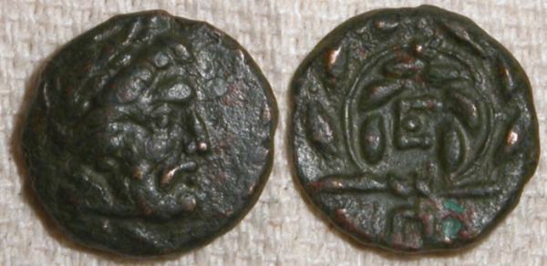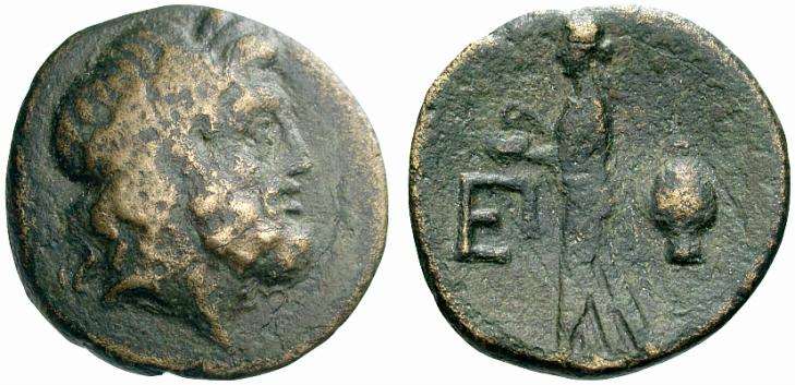 | BMC 19 | Epidauros, Argolis, AE unit. Circa 350 BC. 1.62 g. Laureate head of Asklepios right / E within wreath (Π below). BMC 19-20; SNG Cop 120. | Text | Image |