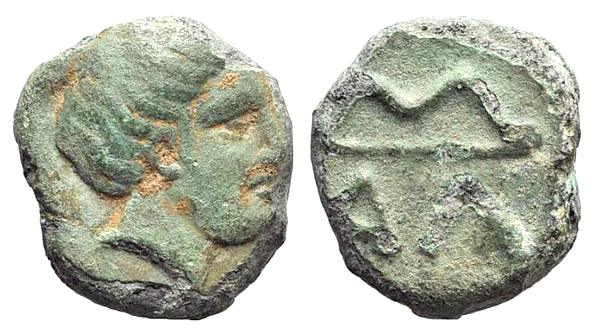 | BMC 1 | Alea, Arcadian League, Arcadia, late 4th-3rd century BC. AE11, 1.91g. Head of Artemis right / A-Λ, strung bow. BCD Peloponnesos 1347; BMC 1. | Text | Image |