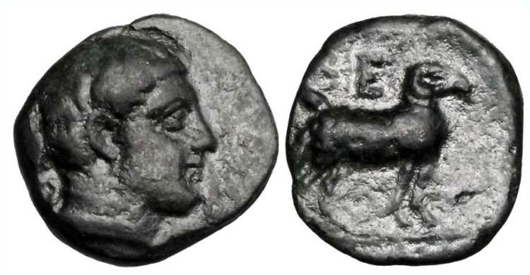 | BCD Pelop. 1609.4 | Pheneos, Arkadia, AE12 chalkon, ca 370-340 BC. 2.4 g. Head of Hermes right, petasos slung behind neck. / ΦE to right of ram standing right, curved branch (?) above. BCD Peloponnesos 1609.4. | Text | Image |