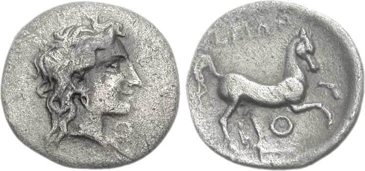 | BCD Pelop. 1757 | Thelpusa, Arcadia, AR obol, Ca 370-350 BC. 0.71 g. Head of Demeter Erinys right; Θ beneath chin / EΡIΩN, the horse Areion prancing right; Θ below. BCD Peloponnesos 1757 (same dies). | Text | Image |